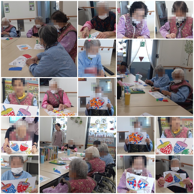 어르신들과 색종이를 이용하여 모자이크 활동지를 완성해 보는 시간을 가졌습니다. ~^^