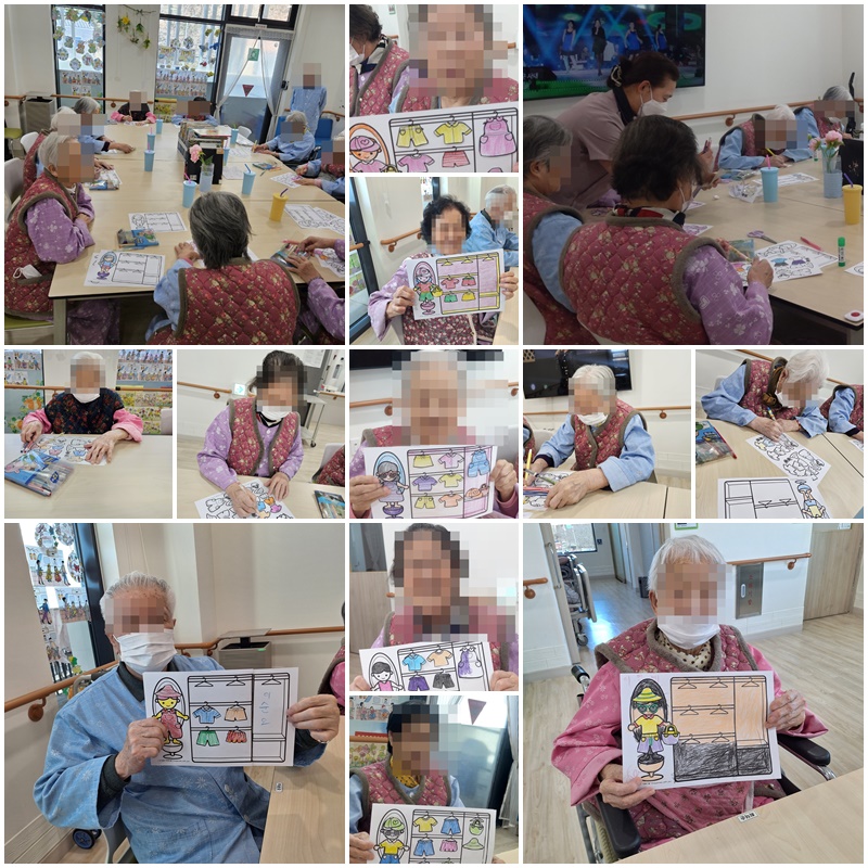 어르신들과 나만의 옷장 정리법을 이야기하며 활동지에 있는 옷을 꾸며 정리해보는 시간을 가졌습니다.~^^