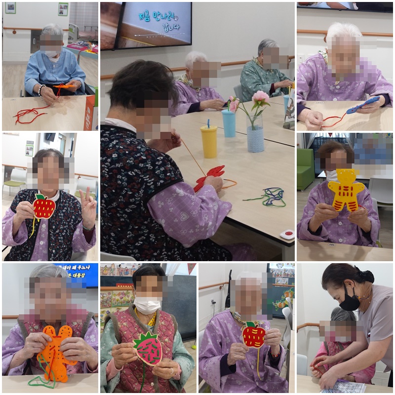 어르신들과 동물, 과일 실꿰기를 하며 바느질 연습을 해보는 시간을 가졌습니다. ~^^