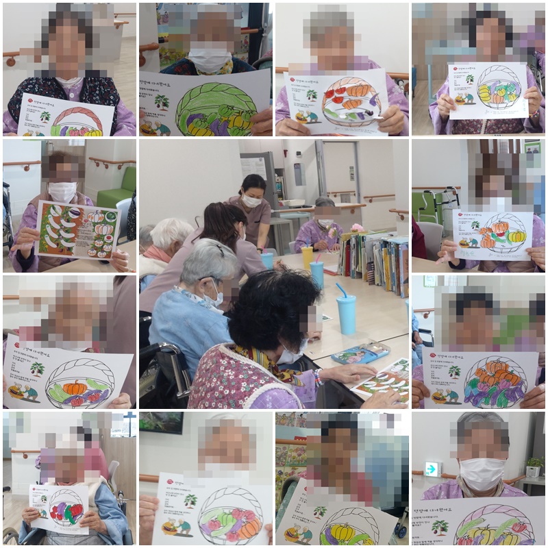 어르신들과 텃밭 채소에 대해 이야기를 나누어 보고 활동지 바구니를 완성해보는 시간을 가졌습니다. ~^^