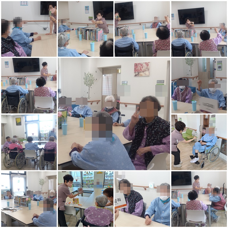 어르신들과 팀 별 게임인 동물, 낱말 카드를 놀이 맞추기를 하며 즐거운 시간을 보냈습니다. ~^^