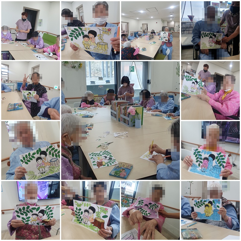어르신들과 활동지에 아카시아 잎으로 파마를 해보는 시간을 가졌습니다.~^^