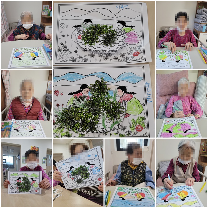어르신들과 봄 나물 쑥에 대해 이야기를 나누어 보고 활동지를 꾸며 보는 시간을 가졌습니다. ~^^