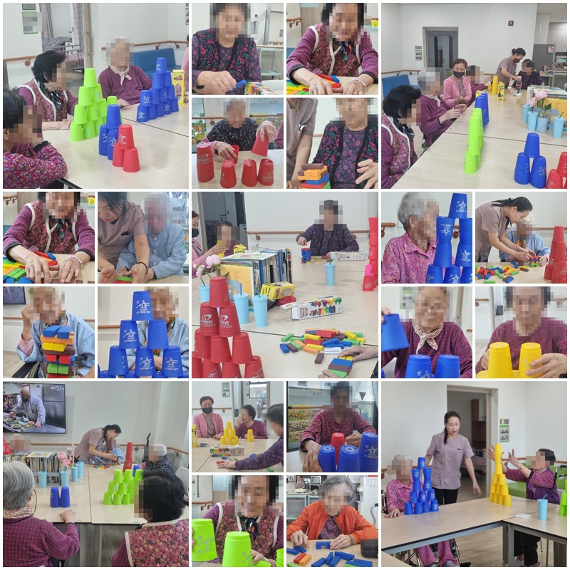 어르신들과 팀을 나누어서 젠가, 컵쌓기 놀이를 하며 즐거운 시간을 보냈습니다.~^^