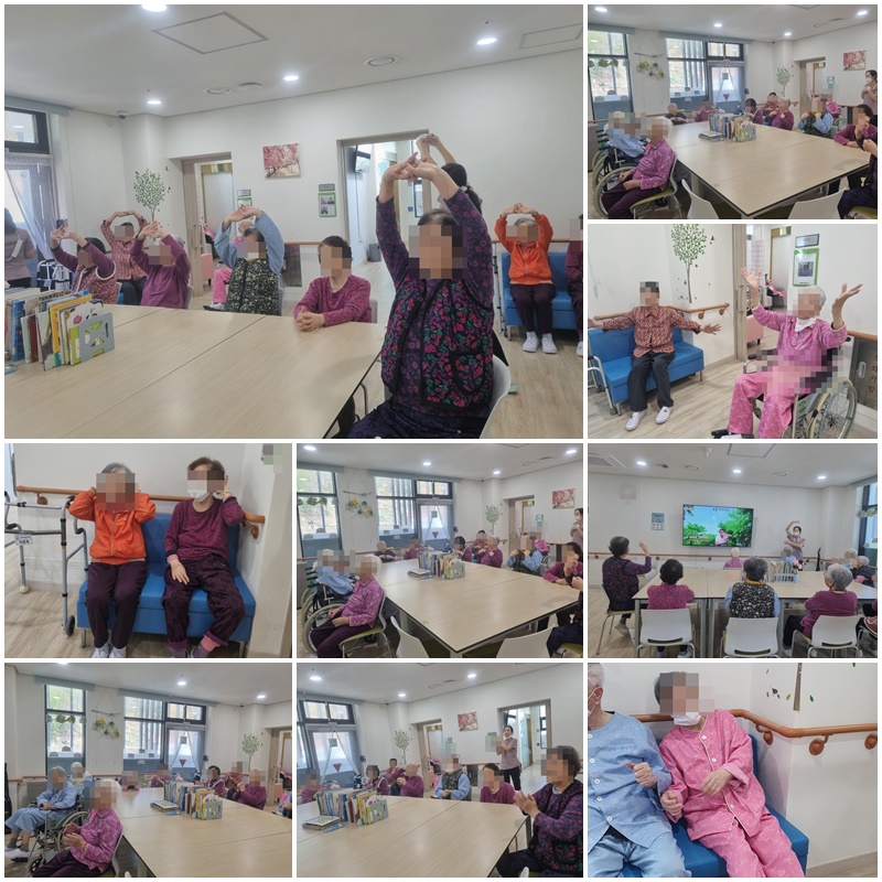 노래에 맞춰 어르신들과 함께 국민 체조를 따라 해보는 시간을 가졌습니다. ~^^