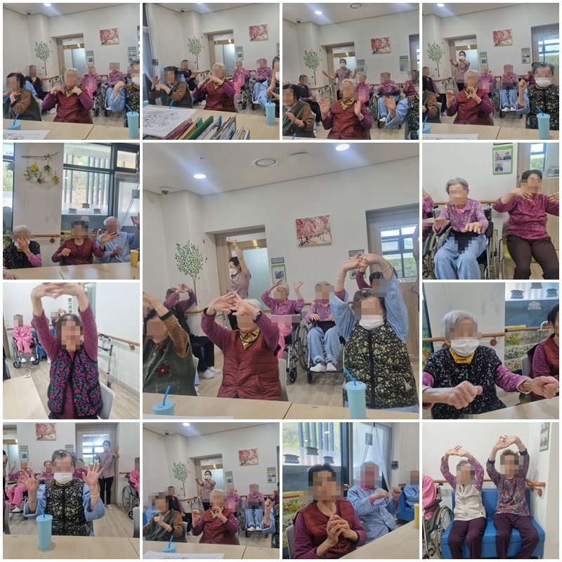 어르신들과 영상을 보며 맨손 체조 운동을 따라해 보는 시간을 가졌습니다.~^^