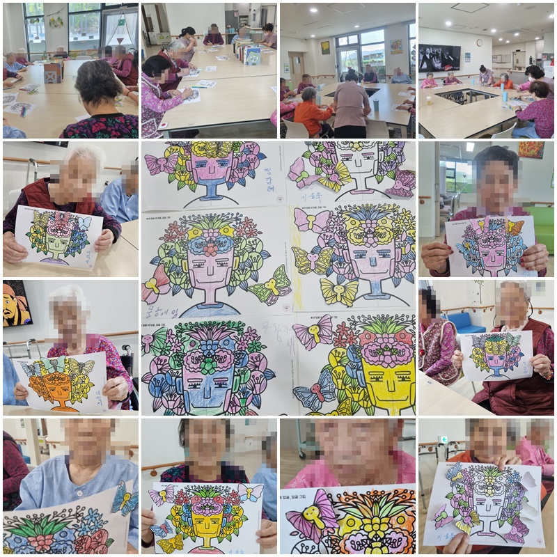 어르신들과 내 얼굴 네 얼굴 활동지 색칠하며 즐거운 시간을 보냈습니다.