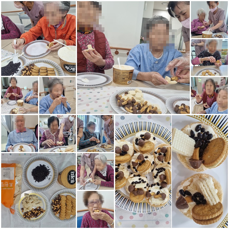 어르신들과 뻥튀기 과자를 이용해 아이스크림 샌드를 만들어 보는 시간을 가졌습니다.~^^