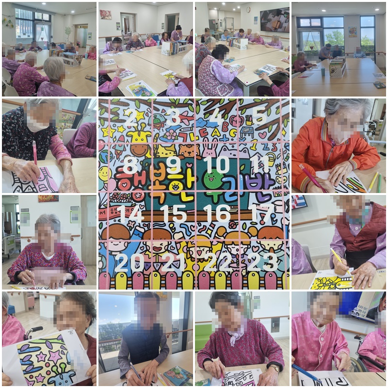 어르신들과 각각의 그림을 완성하여 협동화를 만들어 보는 시간을 가졌습니다. ~^^