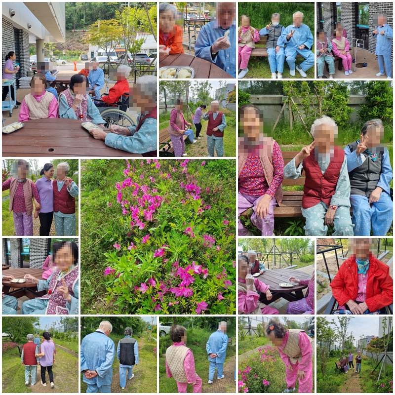 청명한 봄 날씨에 어르신들과 앞 뜰 산책 나와 즐거운 시간을 보냈습니다. ~^^