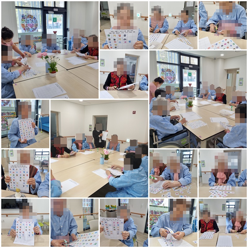 어르신들이 한글자 한글자 오려서 붙이며 단어 조합 잘 하셨음.