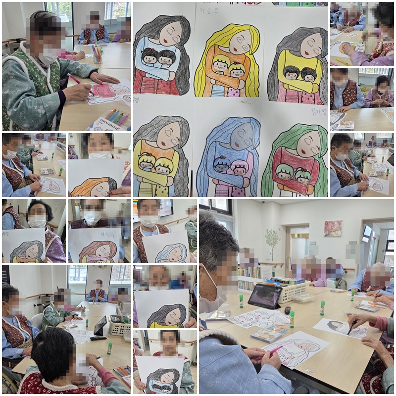 부모님과의 추억을 이야기하며 "엄마와 나" 활동지를 완성해 보는 시간을 가졌습니다. ~^^