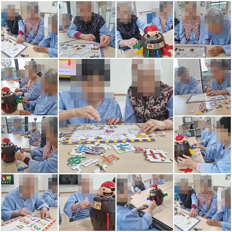 어르신들과 해적잡아라 게임과, 퍼즐 놀이를 해보는 시간을 가졌습니다.~^^