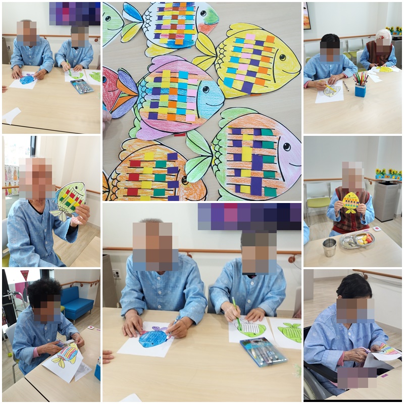 어르신들과 물고기 모양을 격자 무늬로 꾸며보는 시간을 가졌습니다.