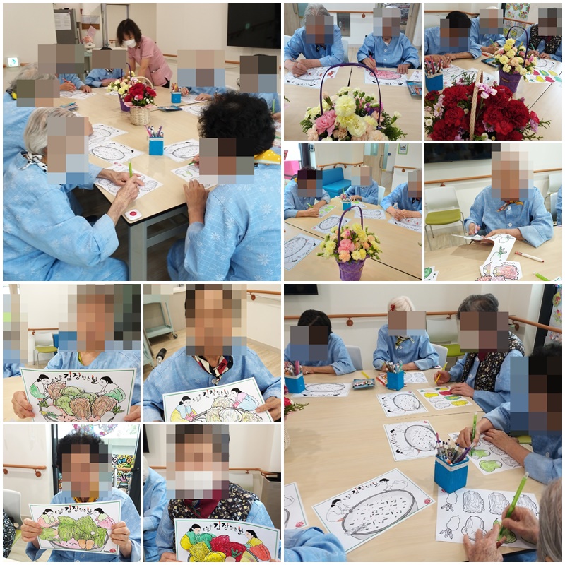 어르신들과 김장 담는 방법, 재료에 대해 말해보며 활동지를 해보는 가졌습니다.