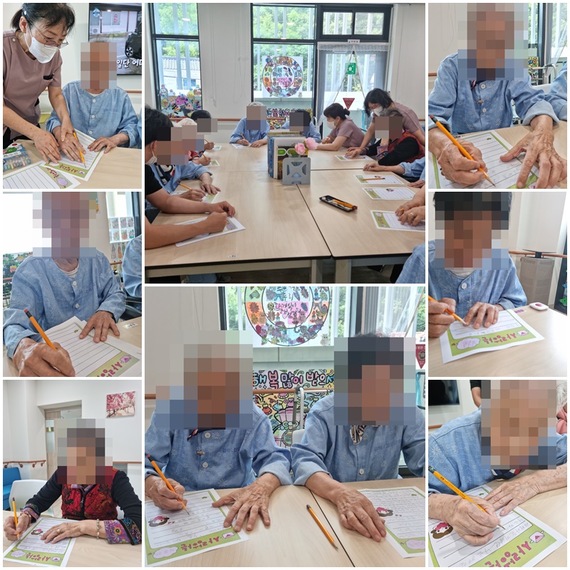 소개글을 써보는 시간을 가졌습니다. 어르신들이 이름, 나이, 고향, 취미생활 등을 쓰며 적극적으로 본인을 소개를 하며 발표해 보는 시간을 가졌습니다.