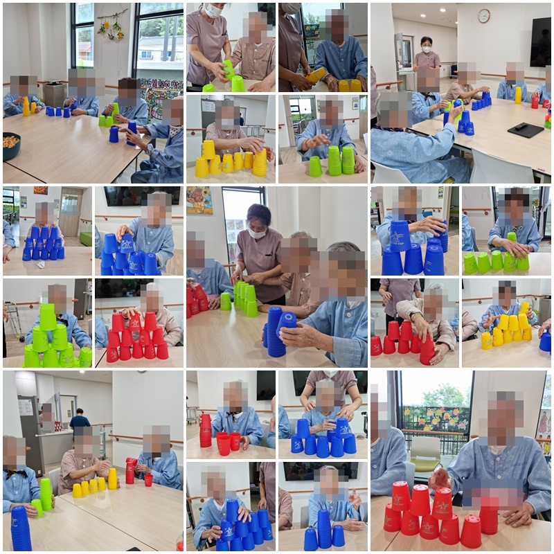 어르신들과 컵쌓기, 공놀이 게임을 하며 흥겨운 시간을 가졌습니다.~^^