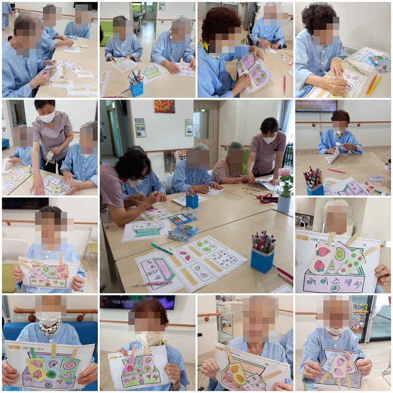 어르신들과 어릴 때 사 먹던 아이스크림 통을 꾸며보는 시간을 가졌습니다. 거리에서 "아이스께끼 있어요" 하는 아이스크림 장사 흉내도 내고 오리고 ♩♪♪♩붙이고 즐거운 시간을 보냈습니다. ~^^