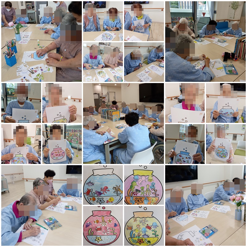 소라, 게, 물고기, 불가사리 등을 색칠하여 어항을 꾸며보는 시간을 가졌습니다. ~^^