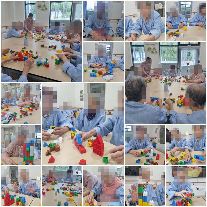 어르신들과 블록을 쌓으며 소근육 운동을 해보았습니다~^^