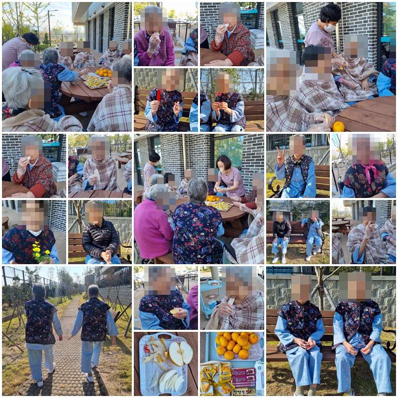 깊어가는 가을 날 우리 어르신들과 앞뜰 산책을 나왔습니다. ~^^