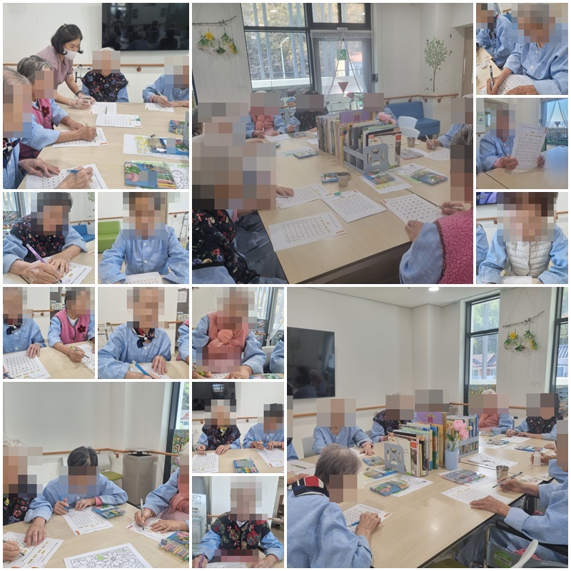 어르신들과 미로에서 단어 찾기를 하며 즐거운 시간을 보냈습니다.