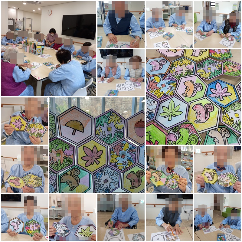 어르신들과 육각 액자를 만들어 환경 꾸미기를 해보았습니다. ~^^