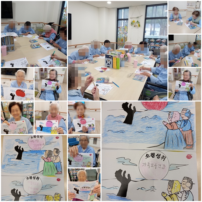 어르신들과 한 해의 소원을 적어보는 시간을 가졌습니다. 모두가 가족의 건강, 만수 무강, 행복, 사랑 이라는 단어를 쓰며 즐겁게 참여하셨습니다.~^^