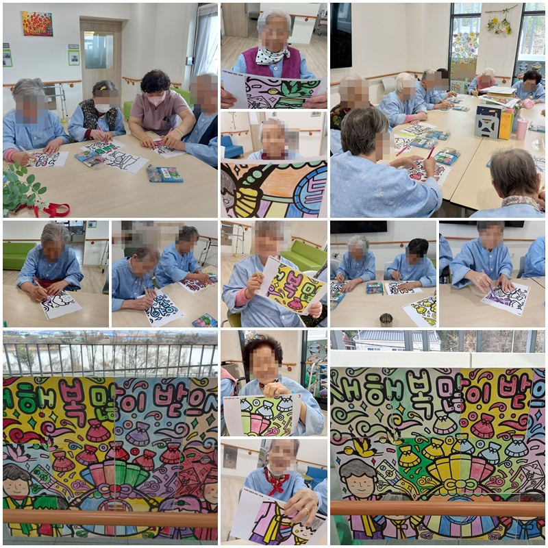 어르신들과 '새해 복 많이 받으세요' 활동지를 협동화로 꾸며보는 시간을 가졌습니다. ~^^