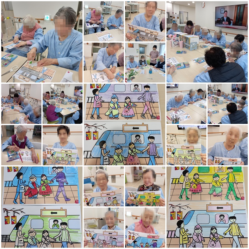 어르신들과 설맞이 고향 길에 대해 이야기 나누며 활동지를 완성해보는 시간을 가졌습니다.