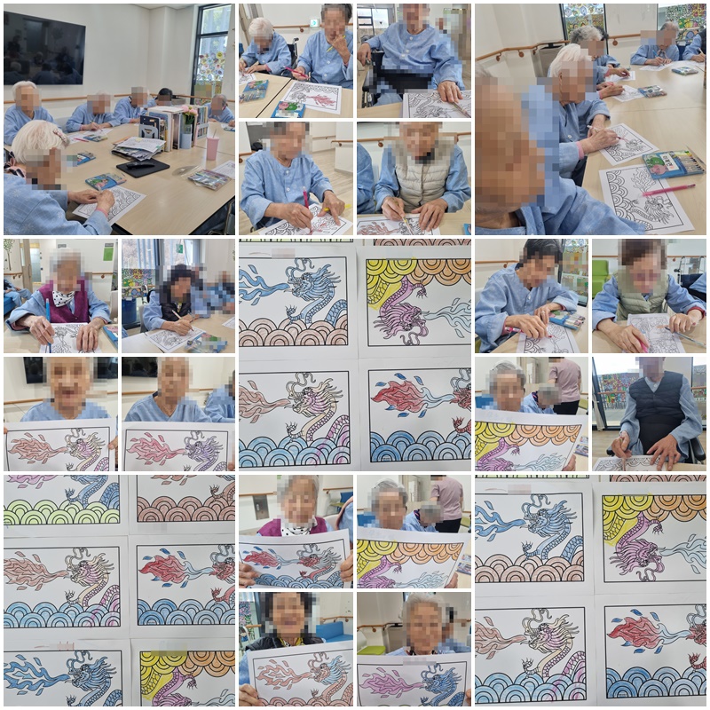 어르신들과 푸른 용의 해를 맞이하여 '용 꾸미기'를 해보았습니다. ~^^