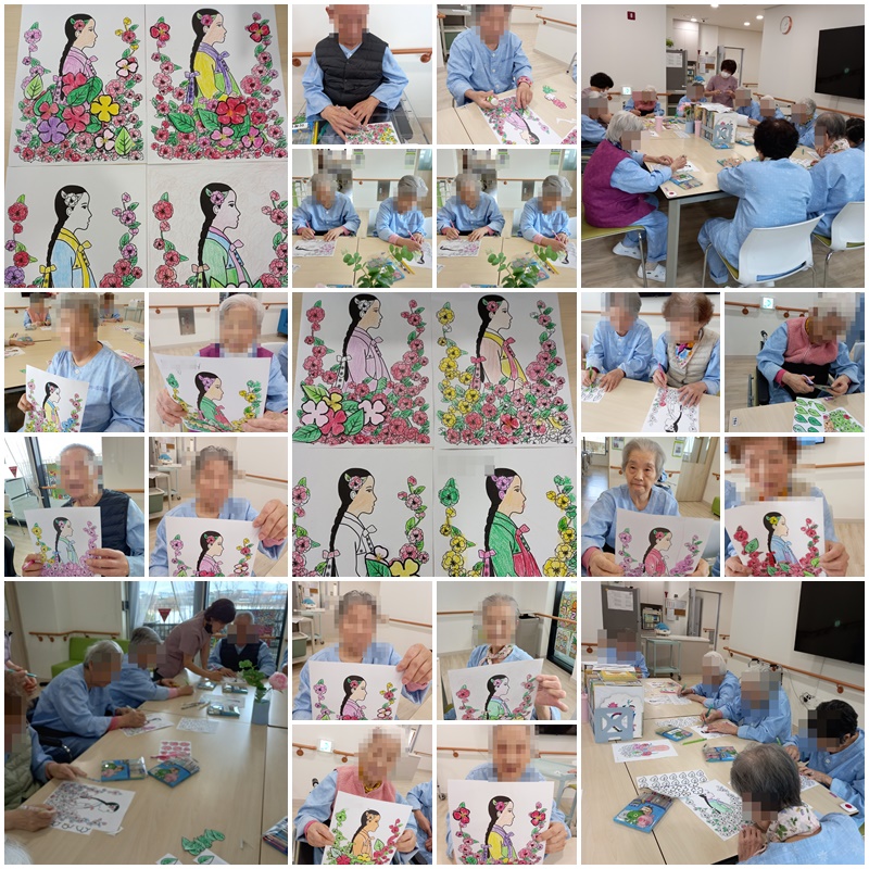 어르신들과 동백아가씨 노래를 불러보며 족자 만들기를 해보았습니다. ~^^