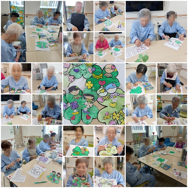 네잎클로버를 색종이로 붙이고, 색칠하며 완성해 보는 시간을 가졌습니다~^^