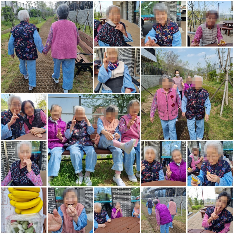 따뜻한 기운에 몸과 마음이 온화해지는 4월, 우리 어르신들과 앞뜰 산책을 나왔습니다. ~^^