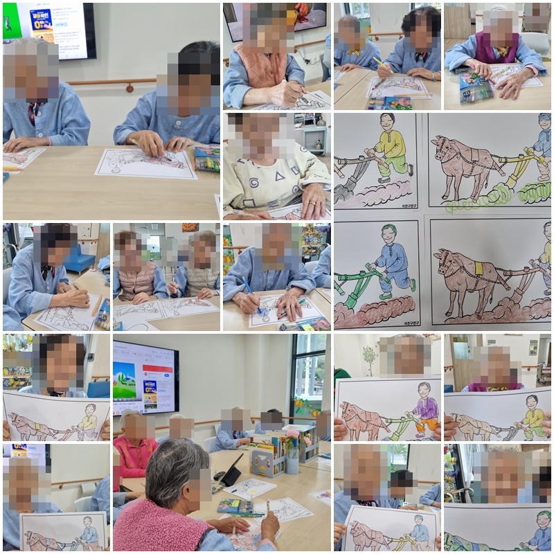 어르신들이 농사 짓던 옛 기억을 회상하며 활동지를 완성해보는 시간을 가졌습니다.
