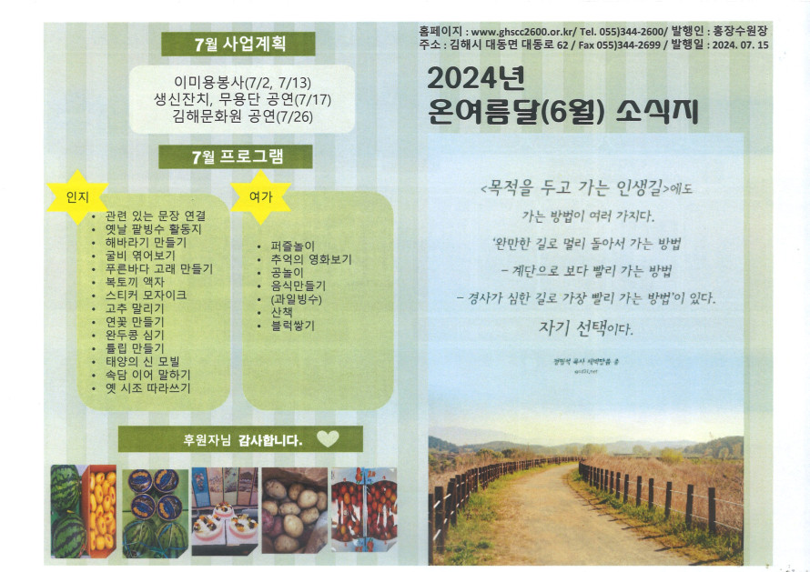 2024년 온여름달(6월) 소식지 작성자 관리자 댓글 0건 조회 213회 작성일 24-07-15 11:01 본문 2024년 온여름달(6월) 소식지 목록 이전글2024년 더위달(7월) 소식지 24.08.19 다음글2024년 들여름달(5월) 소식지 24.06.14