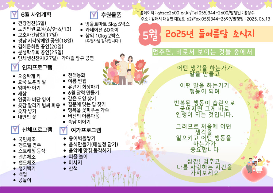 2025년 들여름달(5월) 소식지 작성자 관리자 댓글 0건 조회 108회 작성일 25-06-15 08:54 본문 2025년 들여름달(5월) 소식지 목록 이전글2025년 온여름달(6월) 소식지 25.07.13 다음글2025년 무지개달(4월) 소식지 25.05.14