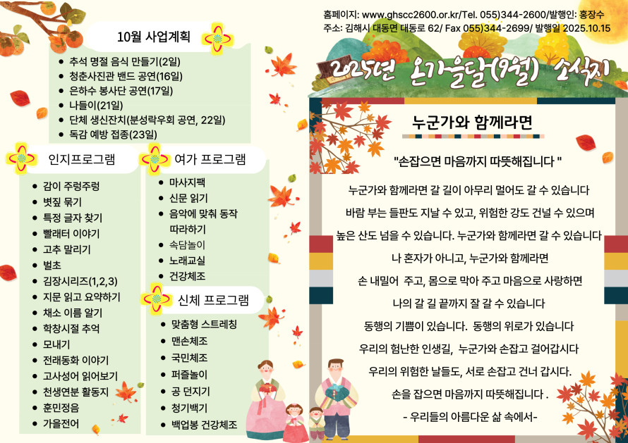 2025년 온가을달(9월) 소식지 작성자 관리자 댓글 0건 조회 57회 작성일 25-10-15 08:45 본문 2025년 온가을달(9월) 소식지 목록 이전글2025년 열달(10월) 소식지 25.11.17 다음글2025년 들가을달(8월) 소식지 25.09.15